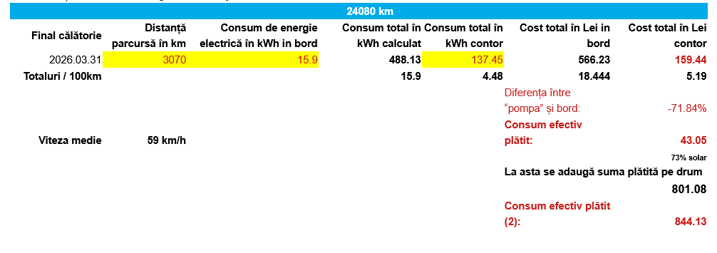 - Statistica/100km: RON 36,56; 15,66 kWh
