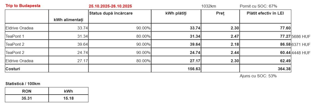 La asta s-au adăugat o grămadă de plimbări prin oraș, după care am alimentat până la 90% la o fabrică în Csepel (pentru că m-a costat 2.18/kWh curentul).