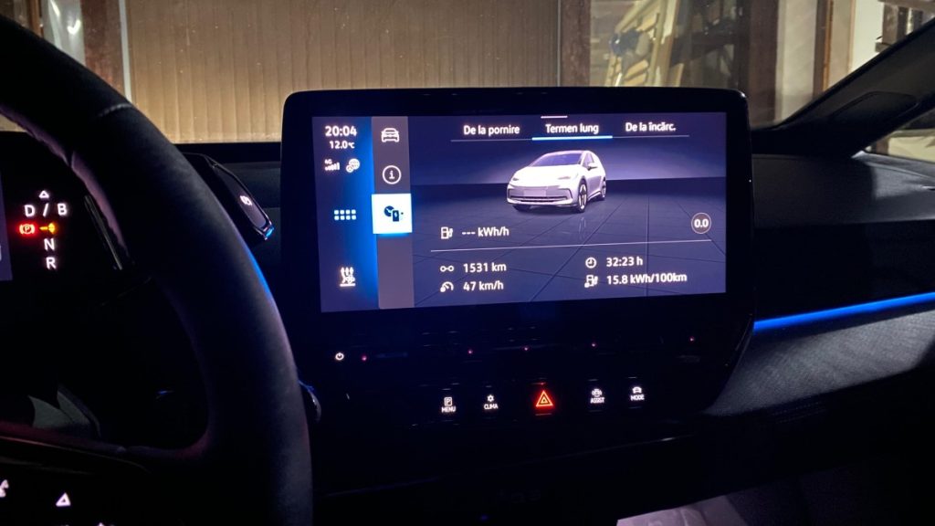 - În bord avem un consum mediu de 15.8 kWh/100km, la o viteza medie de 47 km/h. Vă puteți da seama cum circulăm noi la Cluj, dacă la finalul drumului de Ungaria aveam media de 78 km/h.