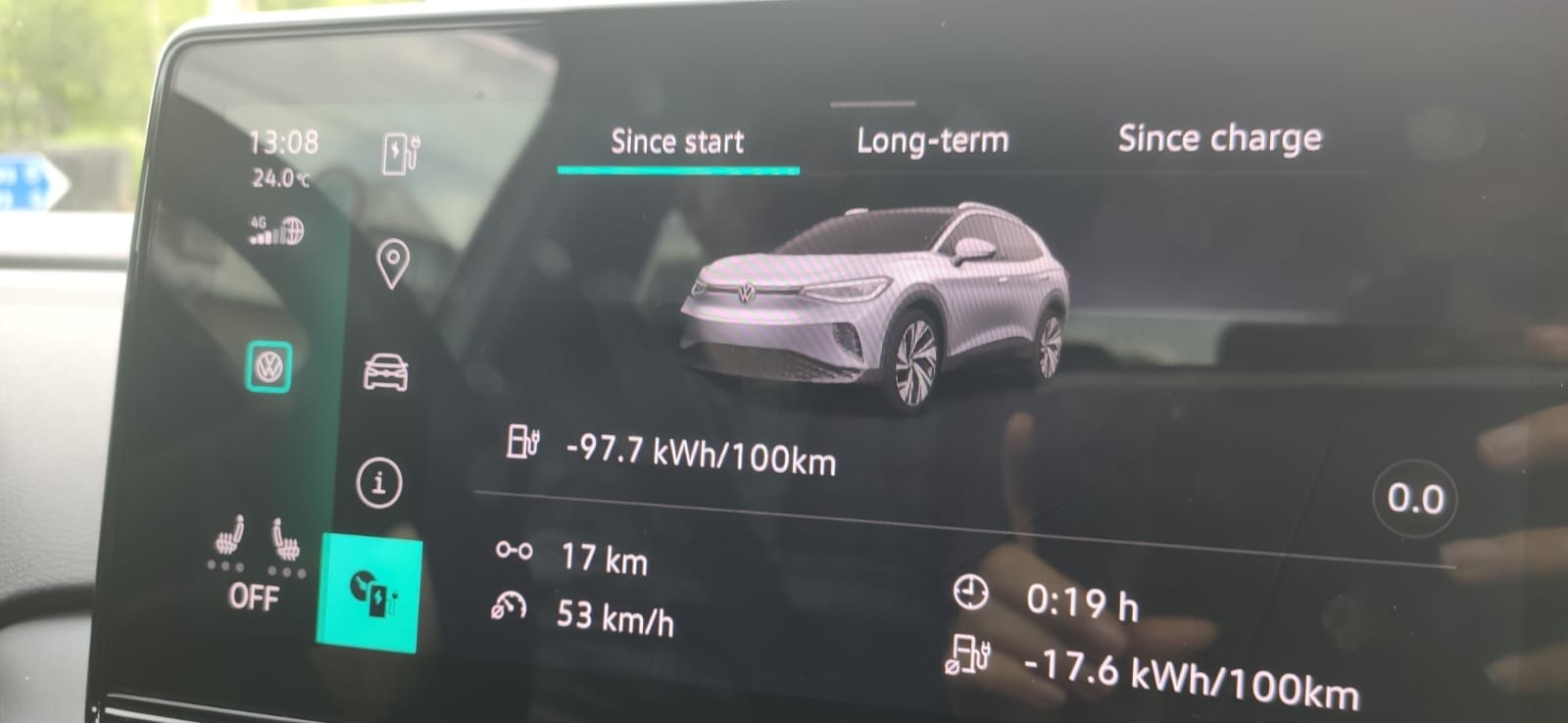 Iar finalul zilei, înainte de încărcare, a adus încă o premieră: 24% baterie, 146 km autonomie rămasă, adică 608 km la 100% încărcarea bateriei.