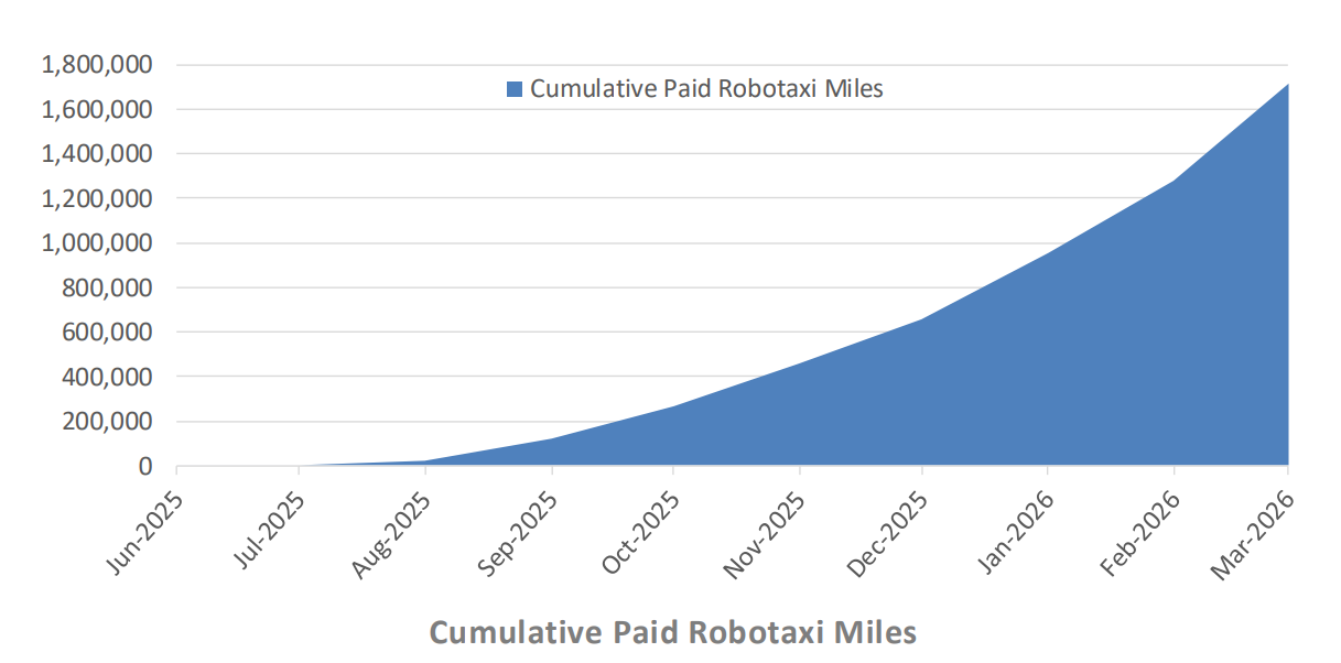 - In paralel, kilometrajul parcurs de clienți plătitori pentru deplasări cu robotaxi este în creștere, contribuind din plus la visteria Tesla.