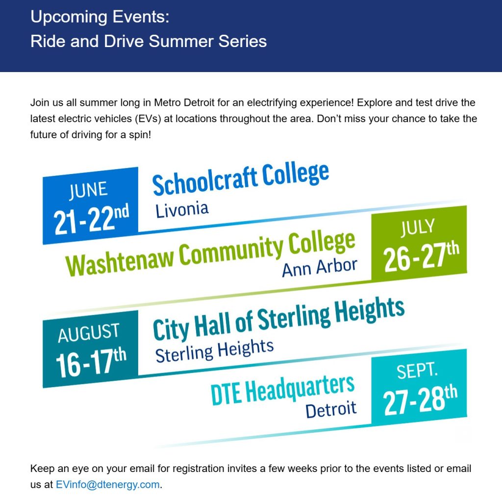 Organizatorul acțiunii de test drive din weekend a fost DTE Energy, un conglomerat cu rădăcini istorice (fondat în 1849) și un nume celebru Detroit Edison, care rămâne și în prezent una din marile firme de producție și distribuție a energiei electrice în zona Motor City. Pare logic… Dacă dealerii nu se înghesuie să vândă noile modele electrice, vânzătorii de electroni preiau conducerea pentru promovarea directă a automobilelor electrice.